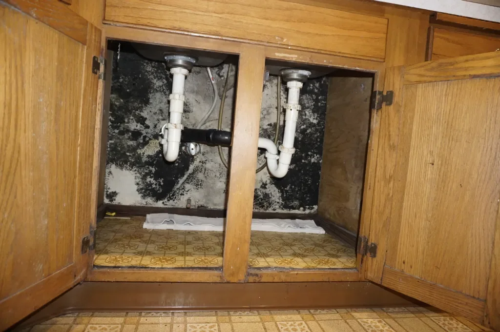 Remove hidden mold from under sinks, behind cabinets, and around appliances.